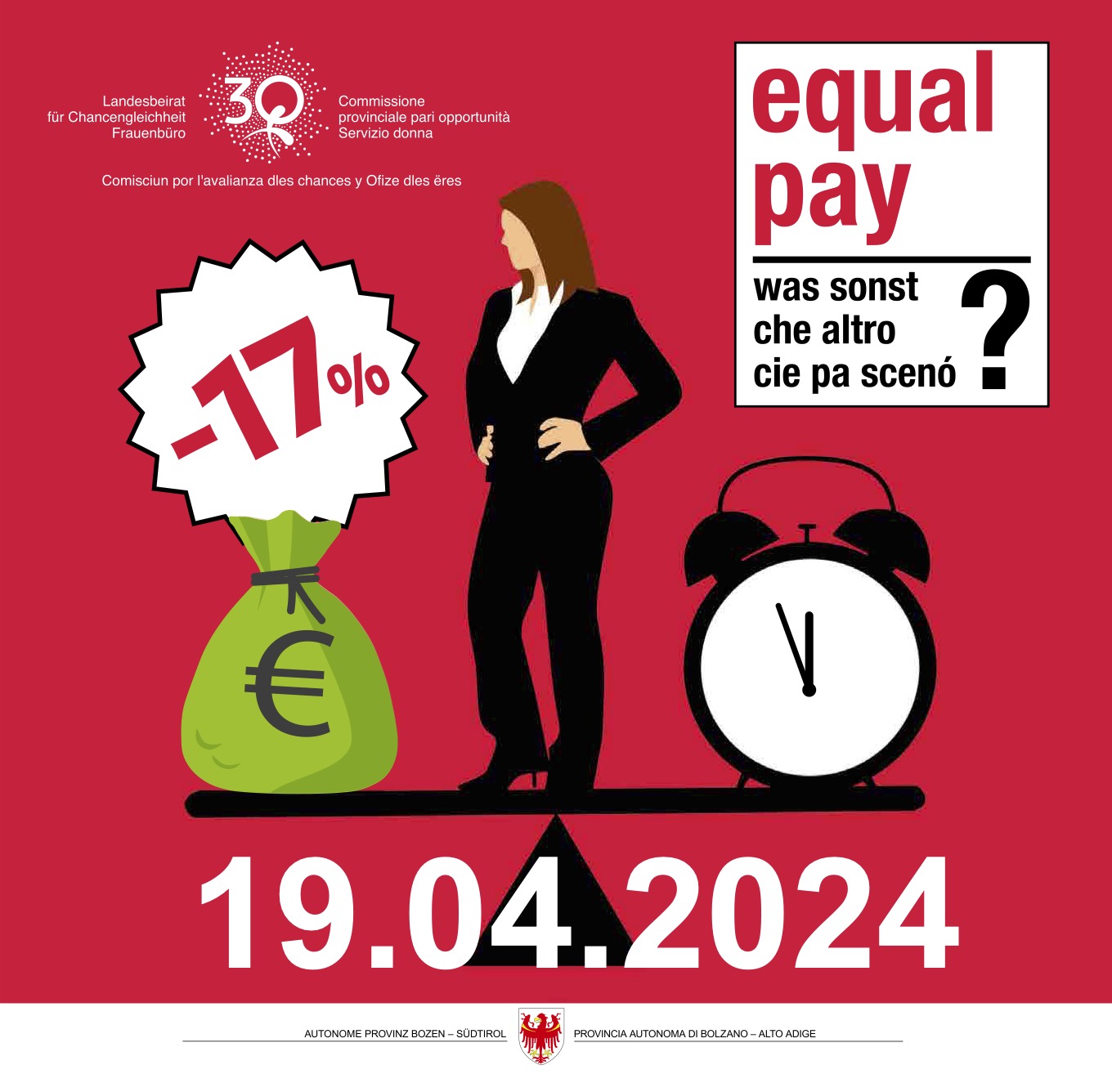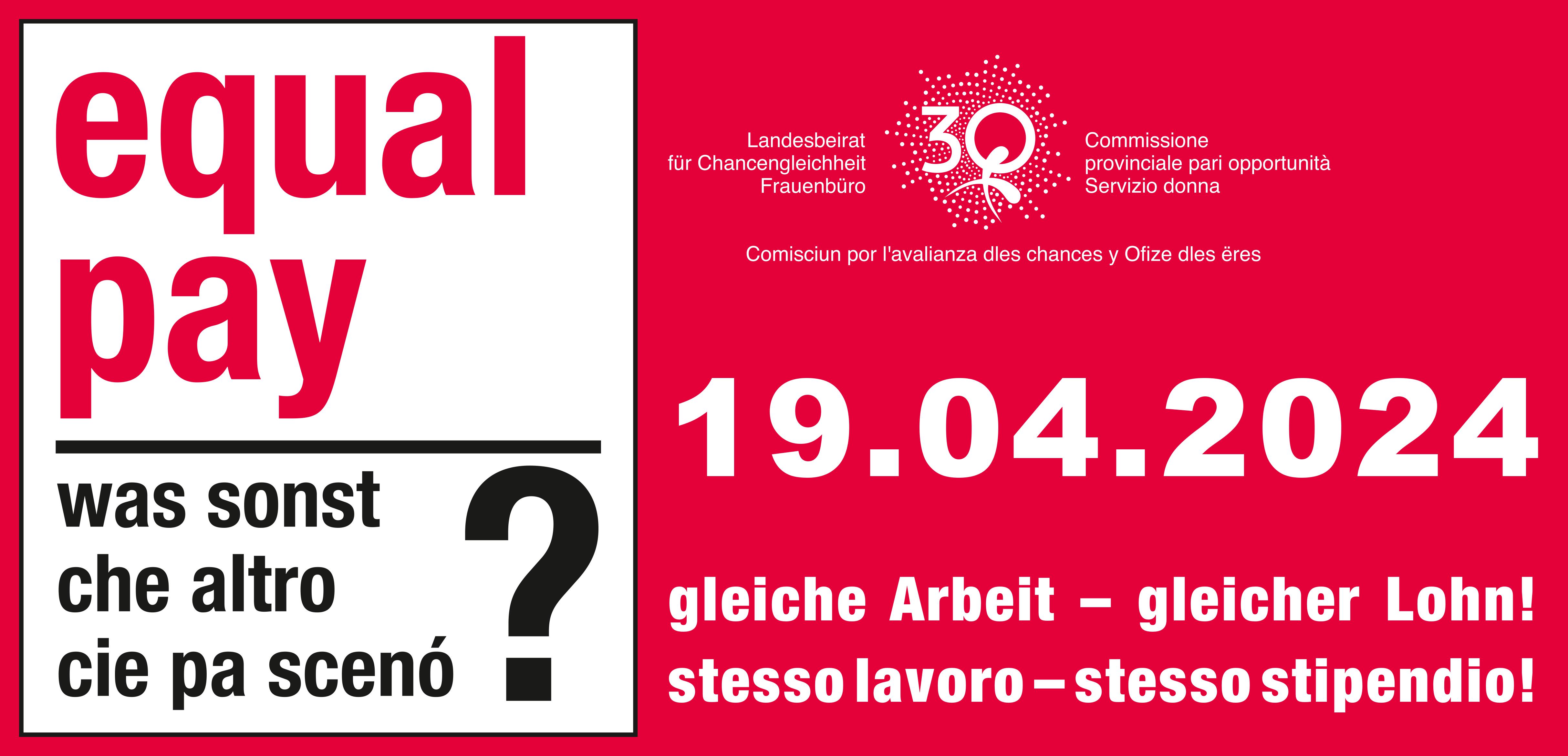 L'Equal Pay Day è stato introdotto in Alto Adige dalla Commissione provinciale per le pari opportunità per le donne ed è - dopo il primo lancio dell’iniziativa nel 2010 - parte integrante del calendario di attività di molte organizzazioni, associazioni e gruppi femminili della nostra provincia.